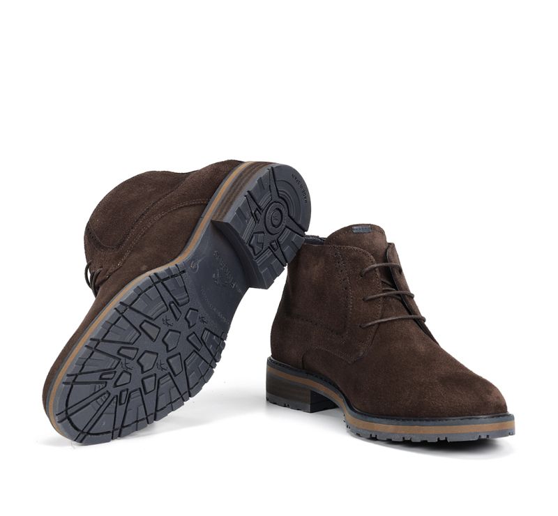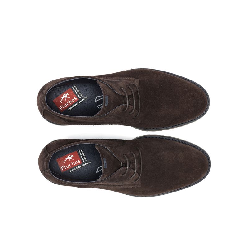 Dark brown elegant men's boots FLUCHOS - a combination of style and comfort! Made of natural suede, these boots offer a sophisticated look and a pleasant feel. Leather insole for maximum comfort all day long. Easy to put on with laces, and the 3 cm heel adds an elegant height.