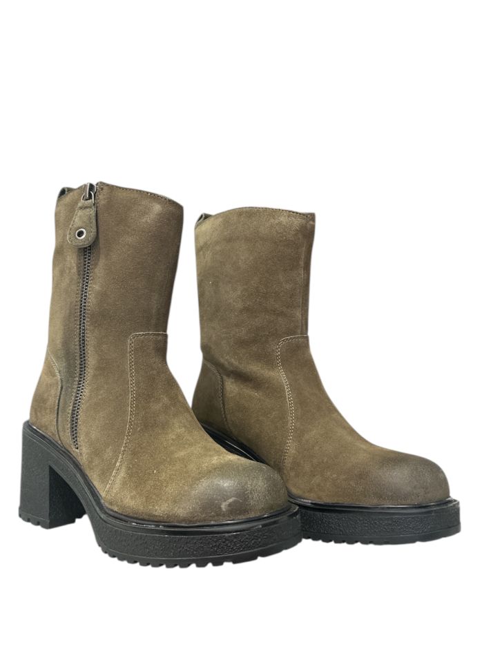 Enter the world of style and comfort with the green HOSIS MILANO boots! These Italian nubuck boots in olive color are perfect for every day. With their loose fit and elegant external zipper, they combine perfectly with both trousers and dresses.