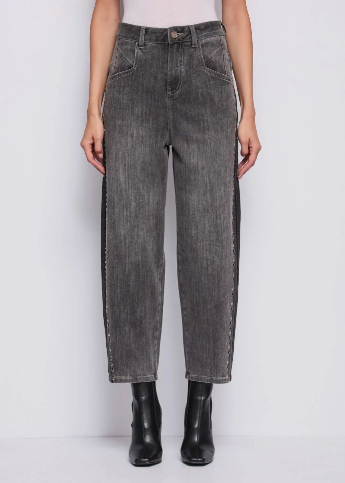 Gray women's carrot jeans GAUDI - a combination of modern design and unparalleled comfort! These high-waisted cropped jeans are made of worn cotton with added metal eyelets to emphasize your bold and urban look with rock chic elements.