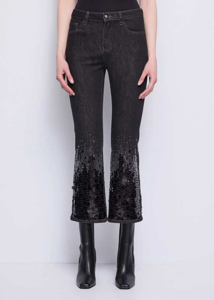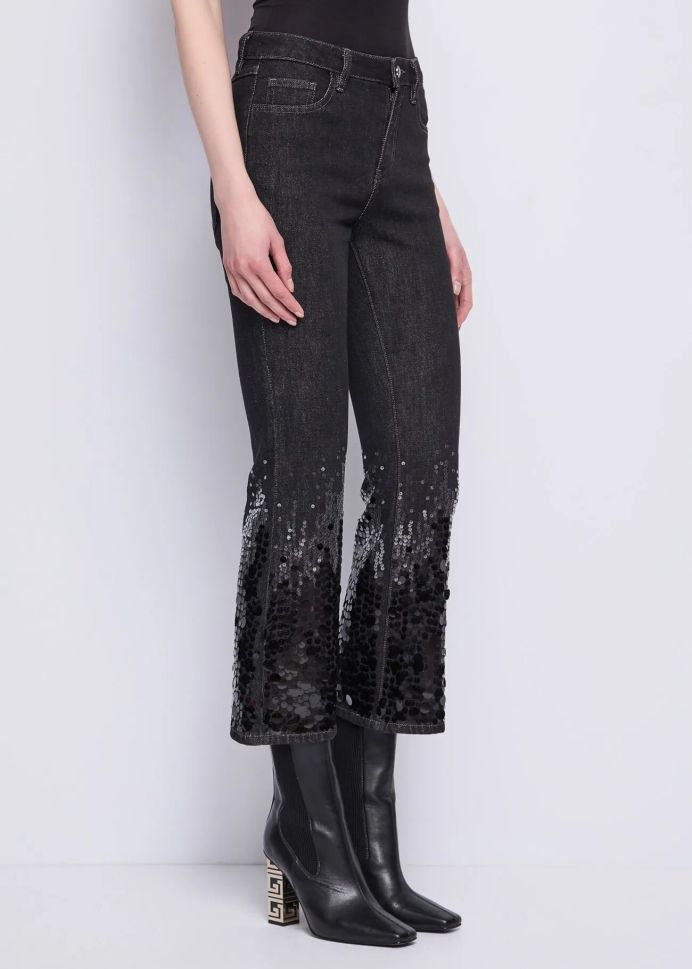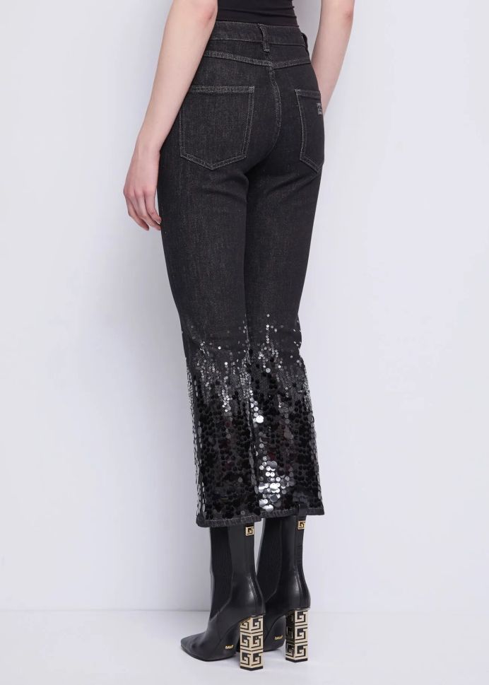 Dazzling GAUDI high-waisted jeans, designed for a glamorous look! Made from stretchy cotton, these flared jeans offer comfort and style. Sequins on the hem add a dazzling accent to your look.