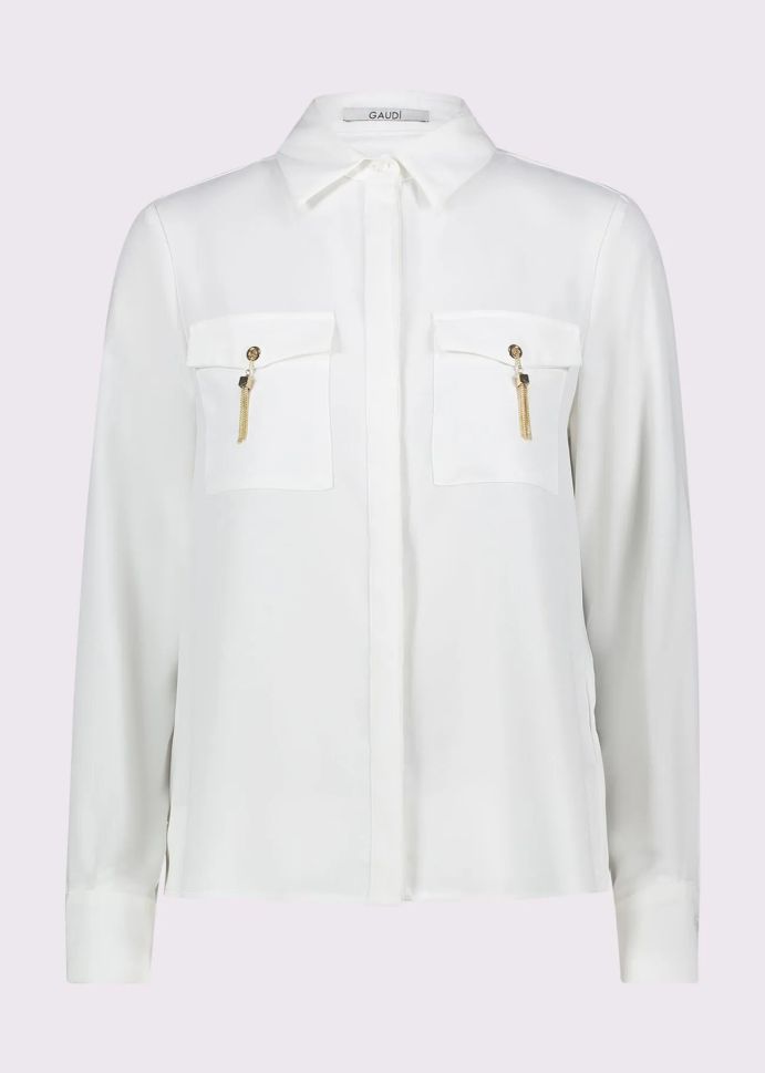 We present to you the white GAUDI shirt – a symbol of minimal elegance and impeccable style. This shirt is the perfect addition to the wardrobe of every woman who appreciates classics and clean lines.