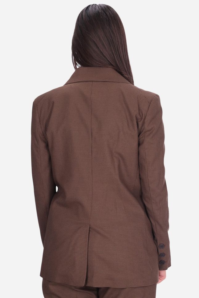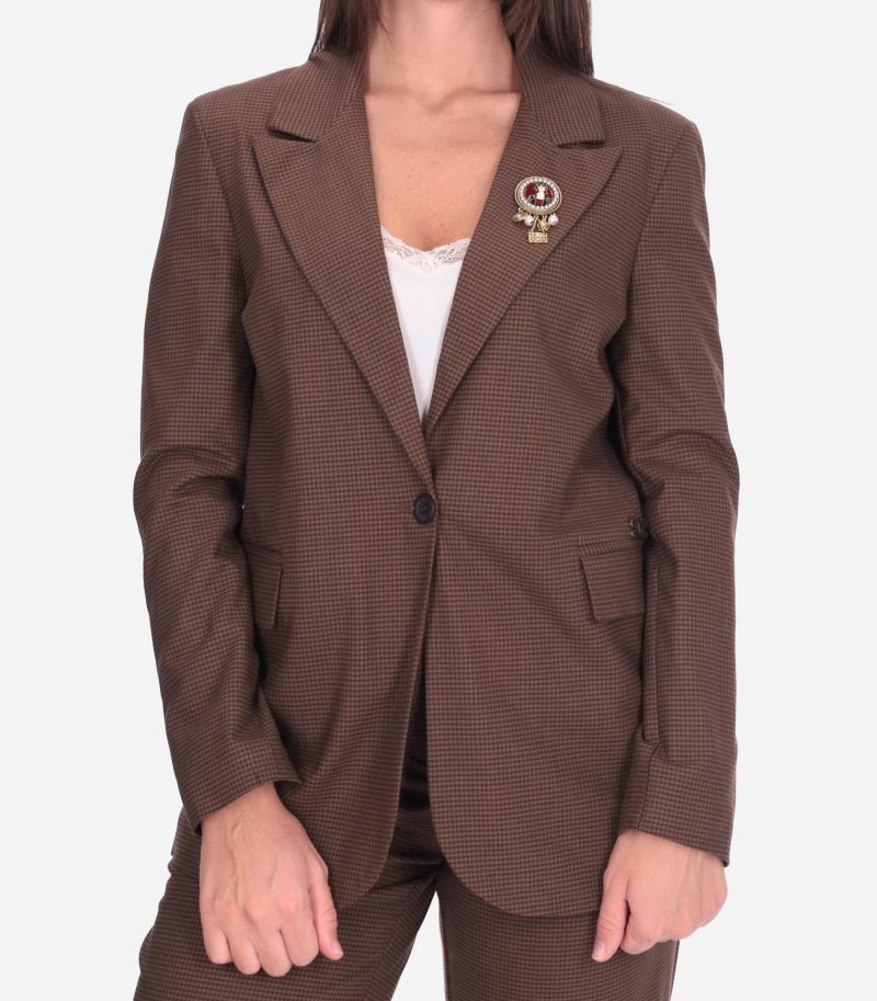 Add style to your look with this elegant women's jacket with small checks in dark brown color.