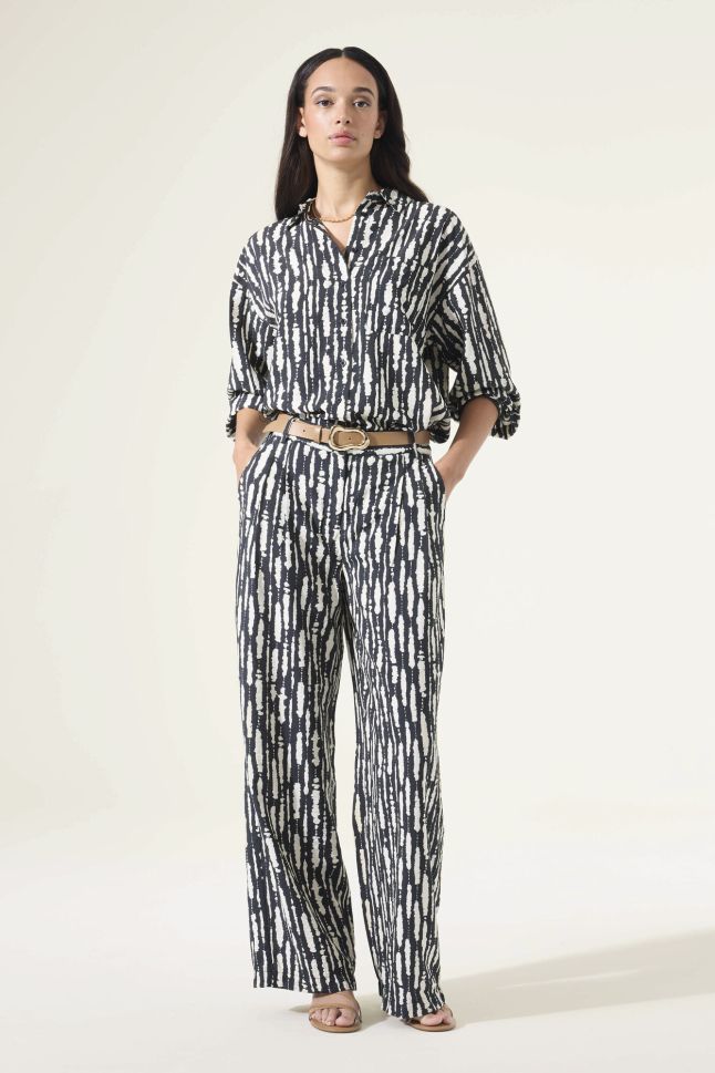 Black and white long-sleeve shirt with print - elegant look GARCIA (SKU) N260230