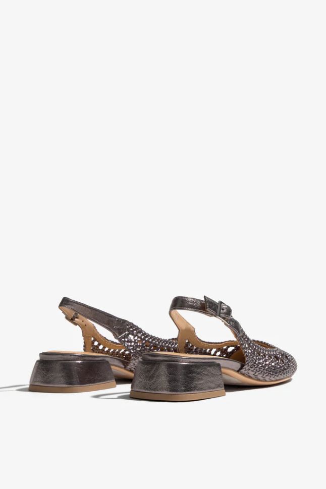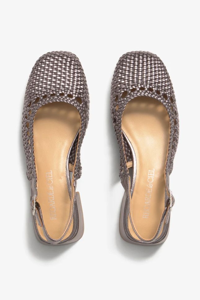 Grey sandals with buckle - elegant and comfortable! Exquisite woven sandals REGARDE LE CIEL, made of gray Antares leather with hand-woven details. Cushioned insole and flexible sole for long-lasting comfort.