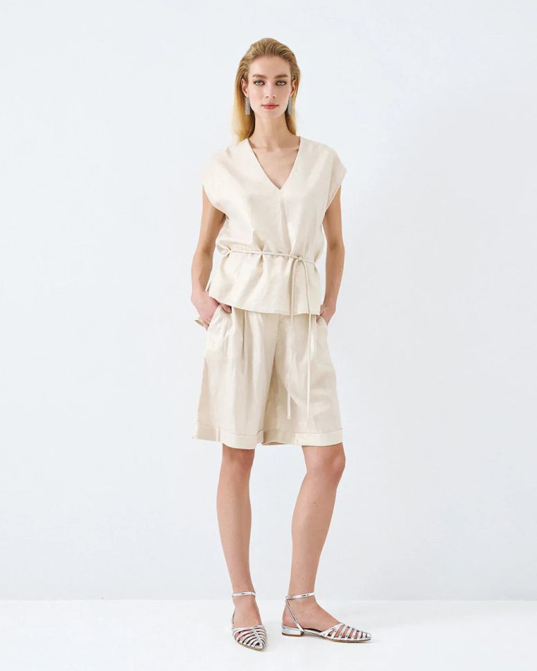 These extremely fashionable shorts are the perfect addition to the wardrobe of every lady who values ​​comfort and elegance. With their golden hue, they add sophistication and shine to any look, while remaining versatile and easy to combine.