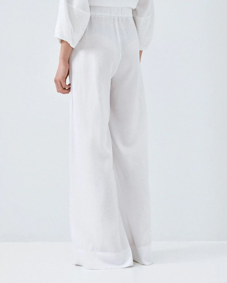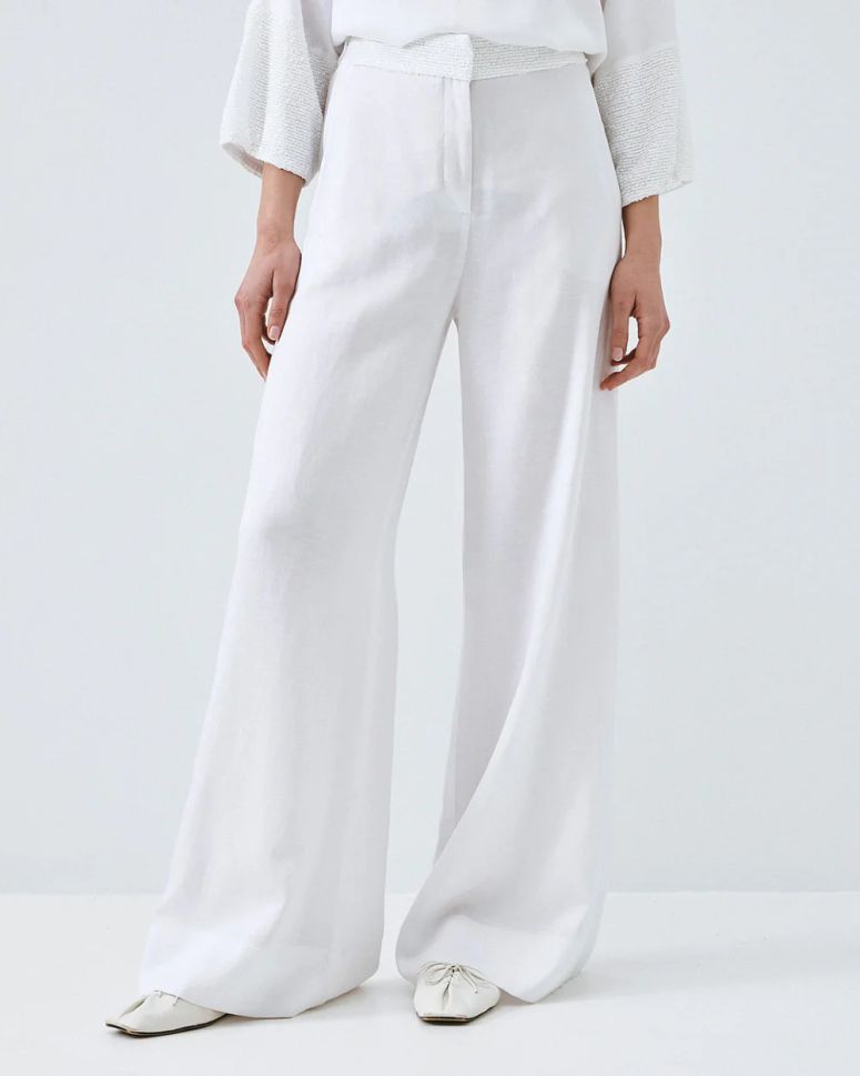Enjoy elegant comfort with these white linen trousers from ACCESS FASHION. With their high waist and wide legs, they offer comfort and style.
