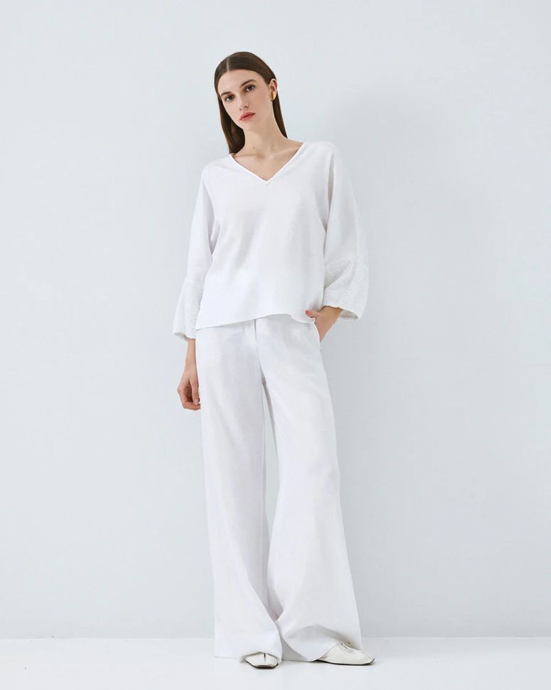 White viscose linen trousers - elegant comfort ACCESS FASHION (SKU) 5032