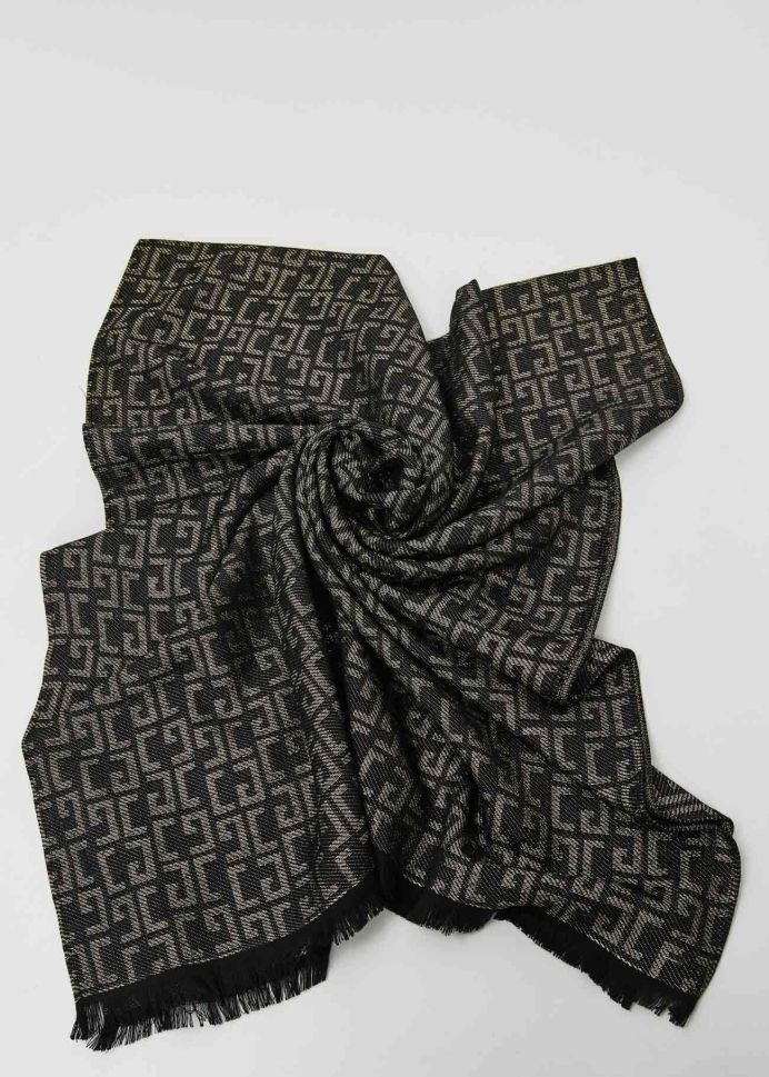 Изискан дамски шал от GAUDI, изработен с фин лурекс за бляскав акцент. В класически черен цвят, този дълъг шал е декориран с блестящо лого на бранда, което придава луксозен вид.