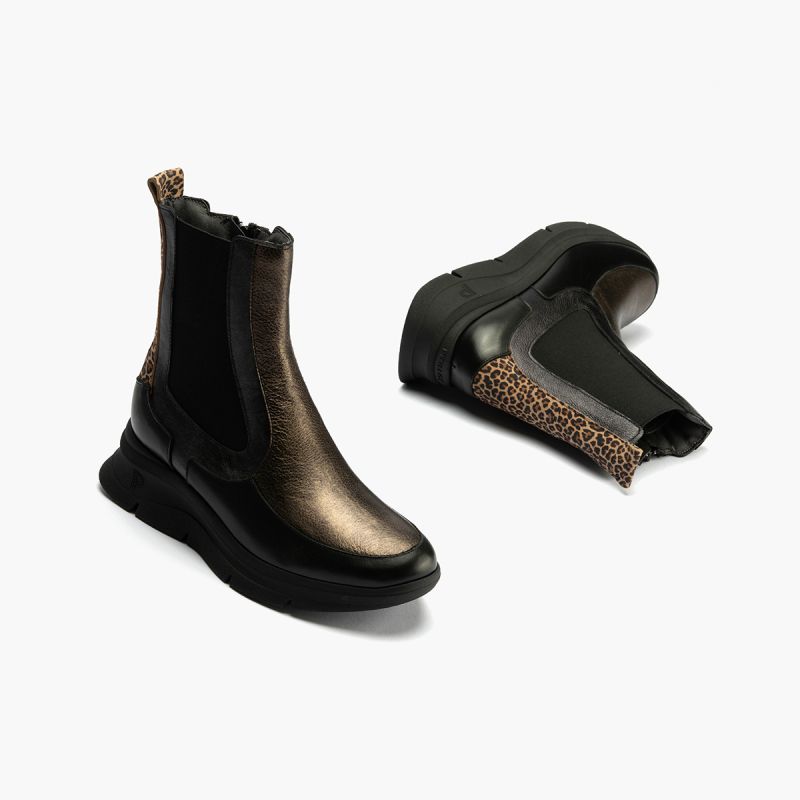 Тези обувки са идеални за дами, които искат да добавят дива нотка към своя спортен или ежедневен вид. Елегантният черен цвят е умело подчертан от леопардови акценти, които придават уникален и модерен вид.