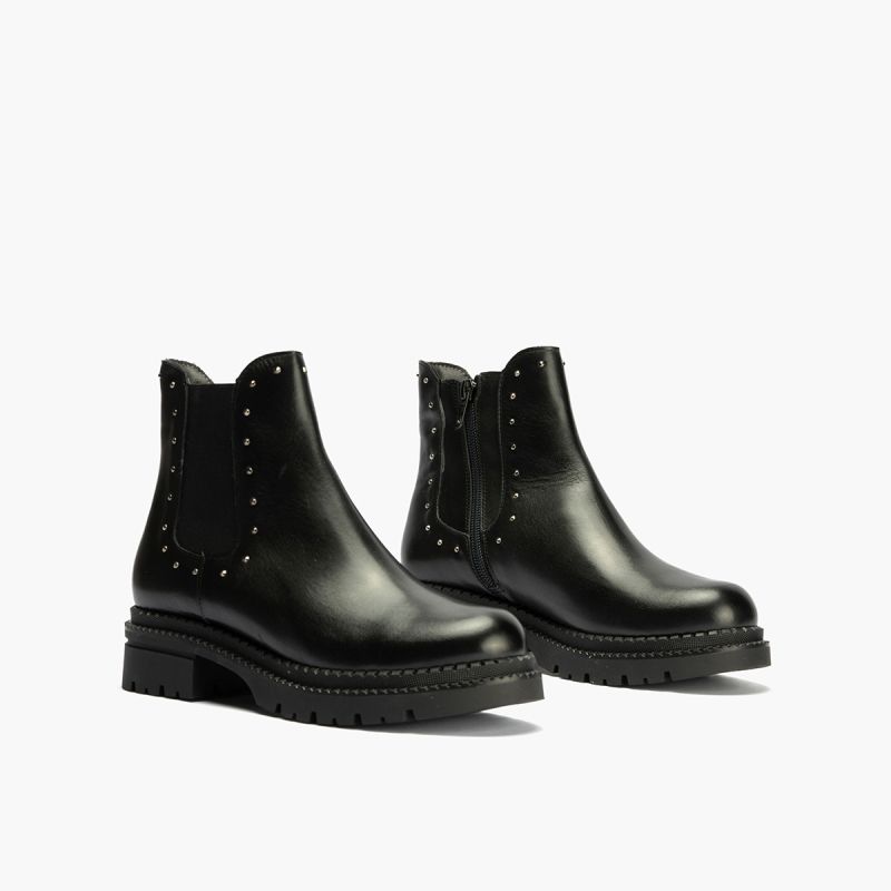 Тези боти са изработени от висококачествена естествена кожа, която осигурява дълготрайност и елегантен външен вид. Черният цвят ги прави универсални и лесни за комбиниране с различни тоалети - от ежедневни до по-официални.