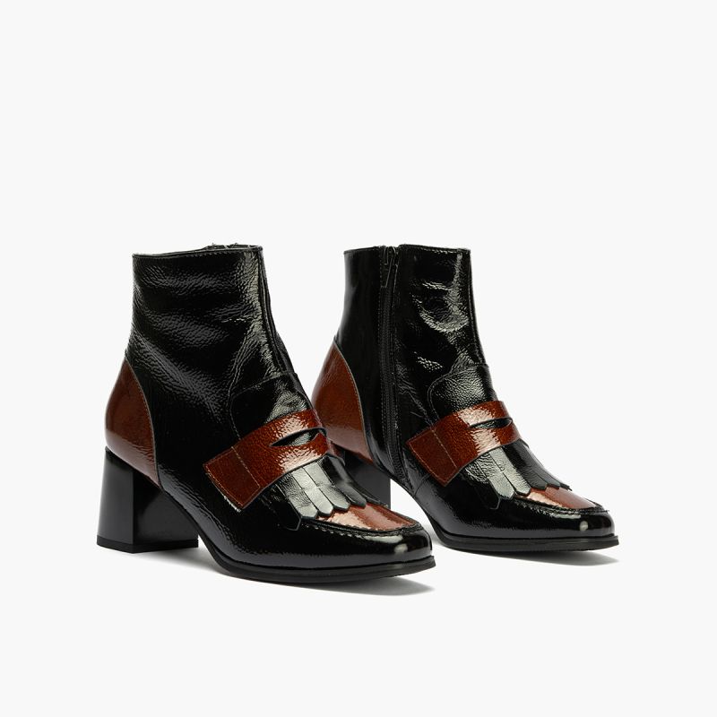 Тези боти са перфектният избор за дамите, които търсят елегантност и удобство в едно. Изработени от висококачествена лачена кожа, те придават изискан блясък на всяка визия. Черният цвят ги прави универсални и лесни за комбиниране с различни стилове облекло - от елегантни рокли до ежедневни дънки.