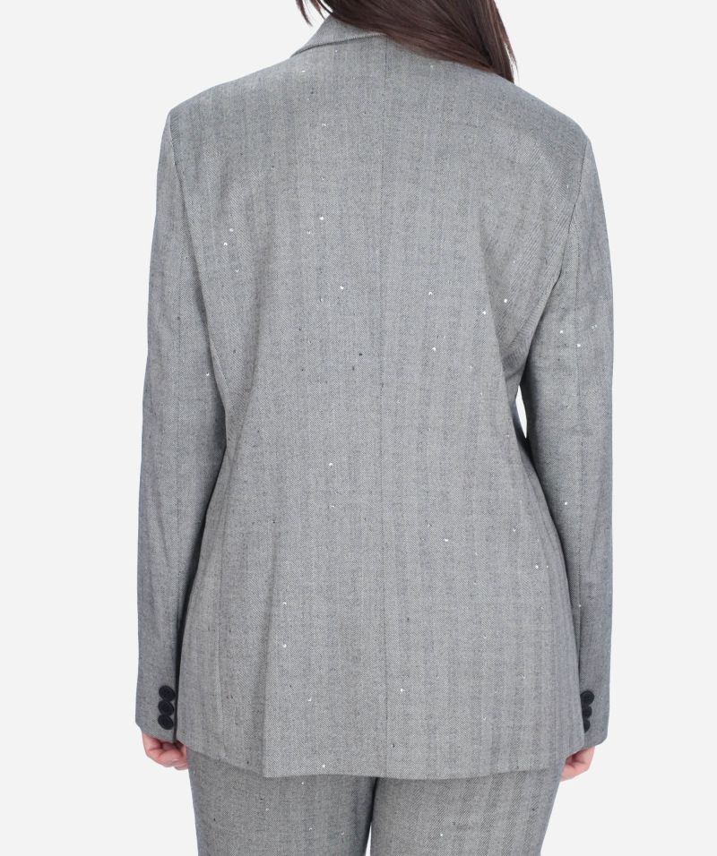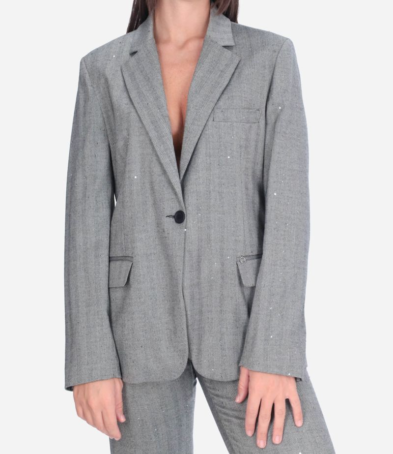 Сиво сако с пайети "Рибя кост" от LE SARTE DEL SOLE - съчетание на елегантност и стил!