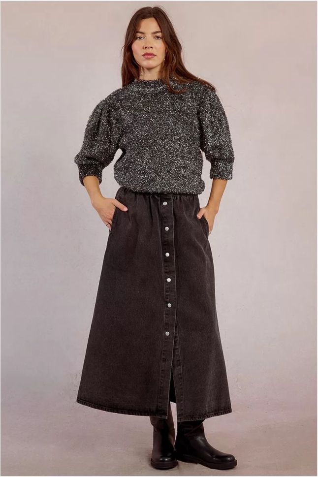 Този блестящ пуловер е перфектен за различни поводи. Носете го с елегантна пола и обувки на висок ток за вечерно събитие или го комбинирайте с дънки и боти за стилен ежедневен вид. Полу-вдигнатата яка позволява да добавите любимото си колие за допълнителен акцент.