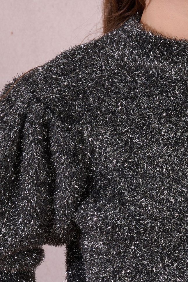 - Блестящ ефект: Дискретният блясък привлича вниманието и прави този пуловер идеален за специални поводи и ежедневна елегантност.