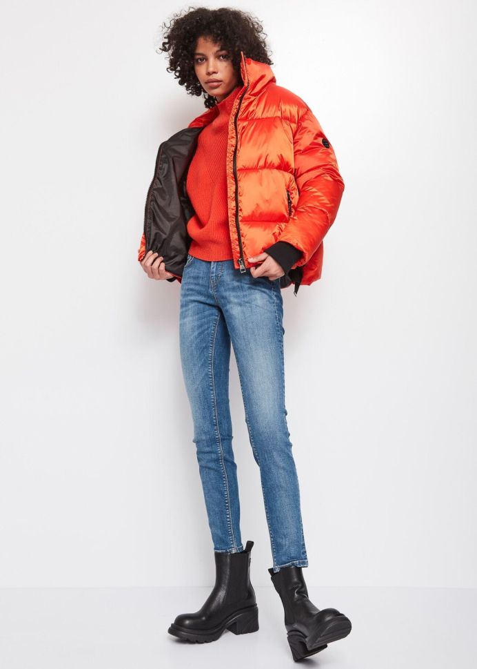 Насладете се на комфорт и елегантност с това дамско олекотено яке GAUDI. Якето е в ярък портокалово оранжев цвят и се отличава със: