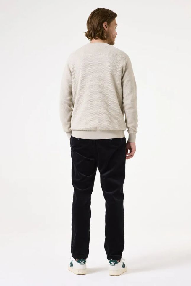 Изработен от 100% памук, този пуловер е мек и приятен на допир, осигурявайки максимален комфорт през целия ден. Еластичният оребрен маншет на ръкава придава завършен вид и гарантира, че ръкавите ще останат на мястото си.