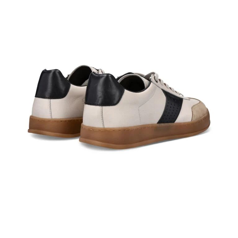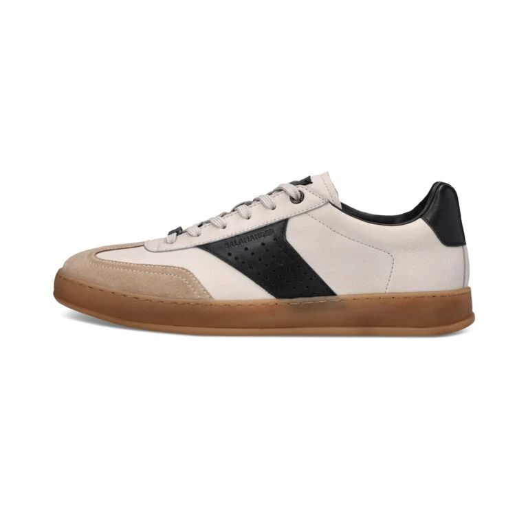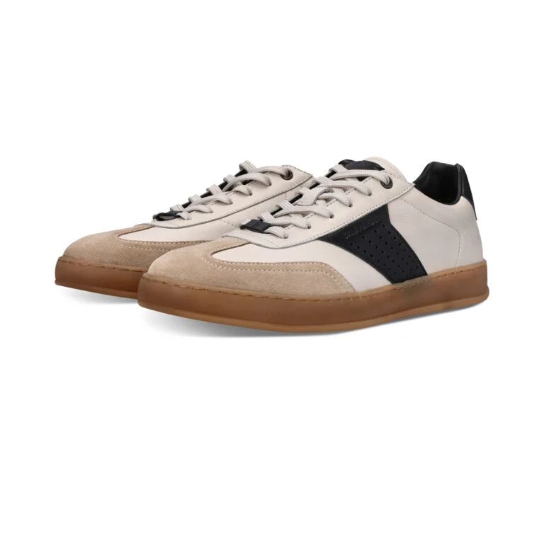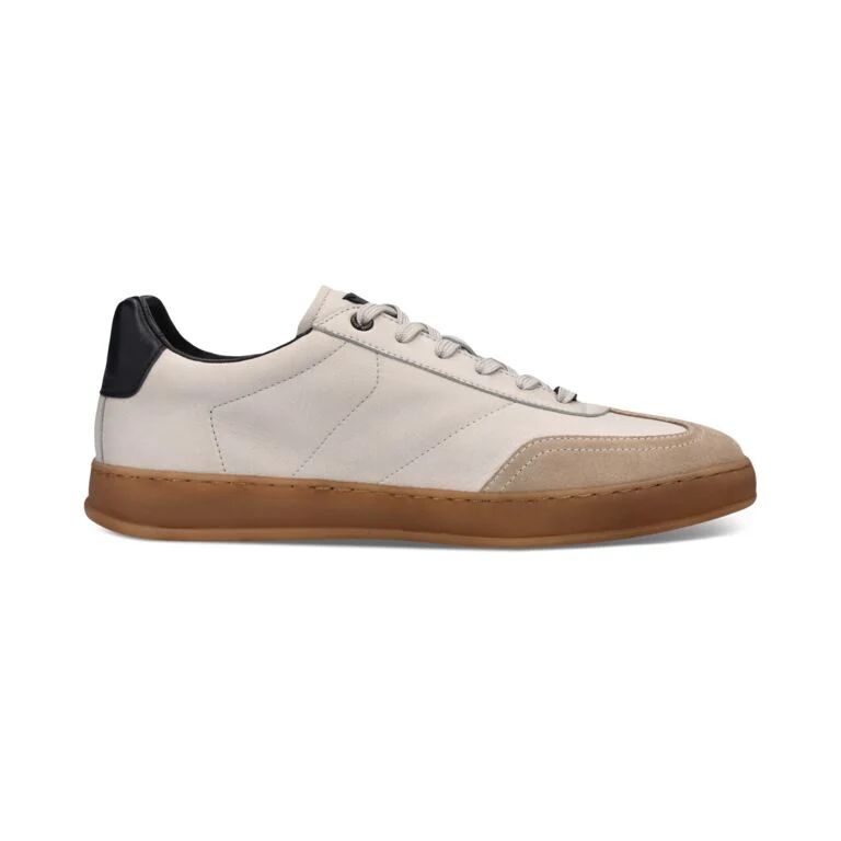 Тези мъжки маратонки съчетават зърнеста гладка кожа и мек велур, за да създадат отличителен вид в почти бяло и бежово с черни акценти. Модерният, вечен дизайн, гъвкавата подметка тип „чашка“ и неподплатената конструкция придават на обувката лек, летен характер. Независимо дали е за ежедневно носене или за свободното време - с този модел ще бъдете стилни и удобни, където и да отидете.