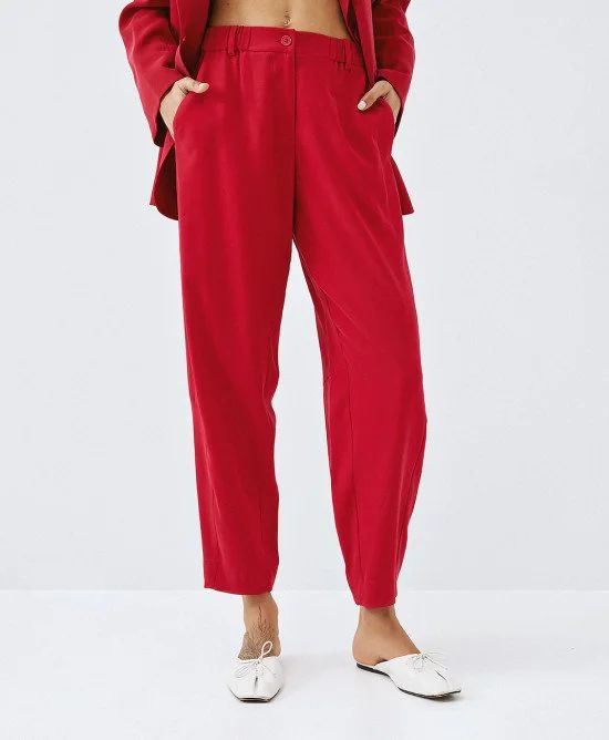 Начало Нова Колекция пролет-лято/26 Дамски панталон с еластична талиа в червен цвятACCESS FASHION (SKU)5051