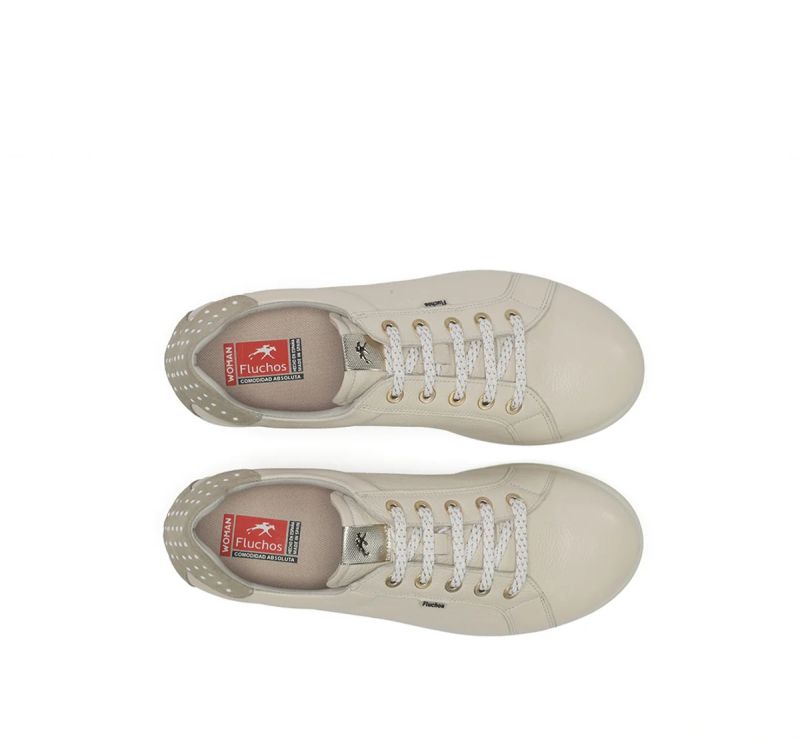 Защо да изберете FLUCHOS? FLUCHOS е марка, известна с високото качество на своите продукти и иновативния дизайн. Всяка обувка е изработена с внимание към детайла и с цел да осигури максимален комфорт и стил на своите клиенти. С кремавите дамски спортни обувки FLUCHOS вие получавате не само красиви, но и функционални обувки, които ще ви служат вярно дълго време.