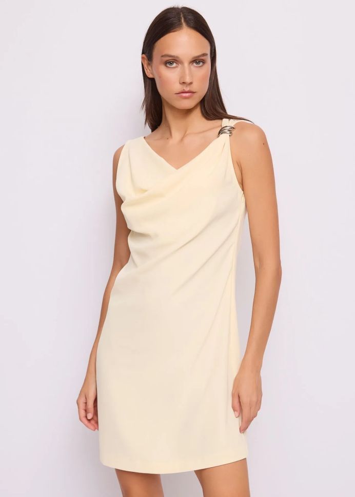 Изискана ванилова рокля GAUDI, идеална за всеки повод! Вталена кройка, дължина над коляното и скрит цип за елегантен силует. С подплата за комфорт и увереност.