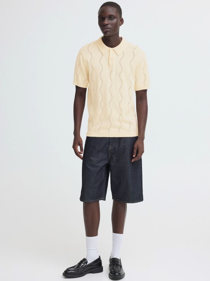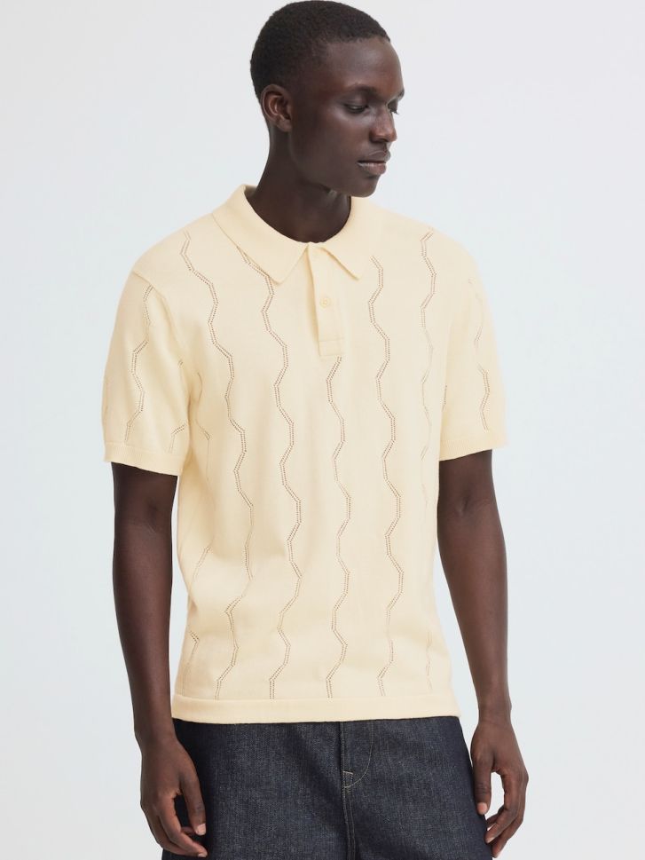 Представяме ви стилната мъжка блуза BLEND, идеална за елегантна визия. Изработена от 100% памук с фина плетка, тази блуза с къси ръкави и яка предлага комфорт и стил. С регулар фит кройка и стандартна дължина, тя е перфектният избор за всеки гардероб.