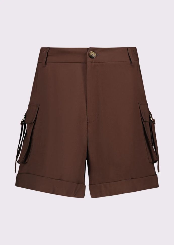 Насладете се на удобство и стил с тези дамски карго къси панталони от вискоза GAUDI! С висока талия и практични гаики за колан, те са идеални за всеки ден. Закопчаването е с копче и цип.