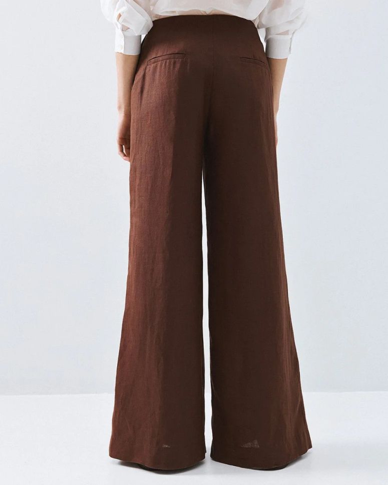 Този кафяв панталон с широки крачоли е идеален за съвременната жена, която търси елегантен комфорт.