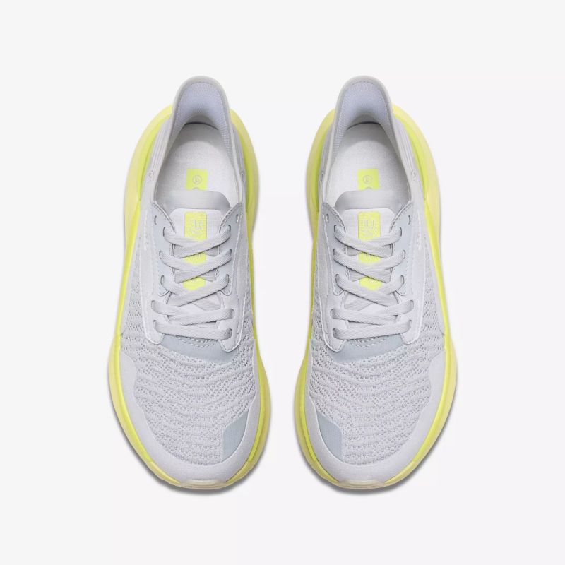 Тези маратонки са перфектният избор за дамите, които търсят комбинация от комфорт и модерен дизайн. Сивият цвят ги прави лесни за съчетаване с различни дрехи, а жълтата подметка добавя свеж и закачлив акцент към визията ви.