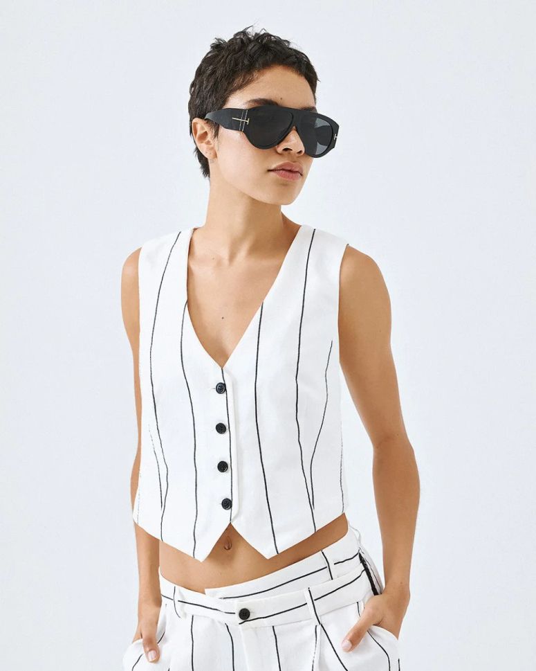 - Къса Дължина: Модерната скъсена дължина прави този елек идеален за комбиниране с панталони с висока талия или поли, създавайки стилен и актуален силует.
