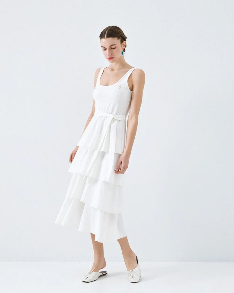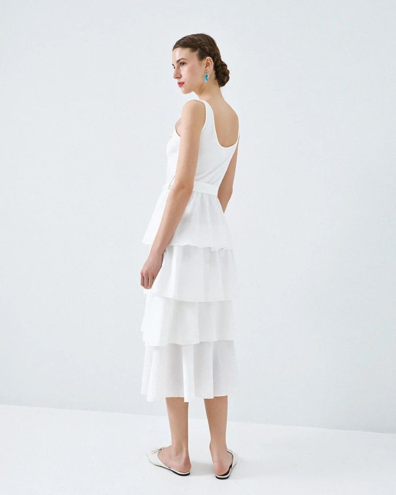 Тази миди рокля е синоним на елегантност. Нейният дизайн е внимателно обмислен, за да осигури едновременно стил и функционалност. Със своята чиста бяла цветова гама, роклята излъчва свежест, чистота и изисканост, правейки я идеална за топлите месеци и за моменти, в които искате да оставите трайно впечатление. Белият цвят е класически и лесно се комбинира с различни аксесоари, позволявайки ви да променяте визията си според настроението и повода.