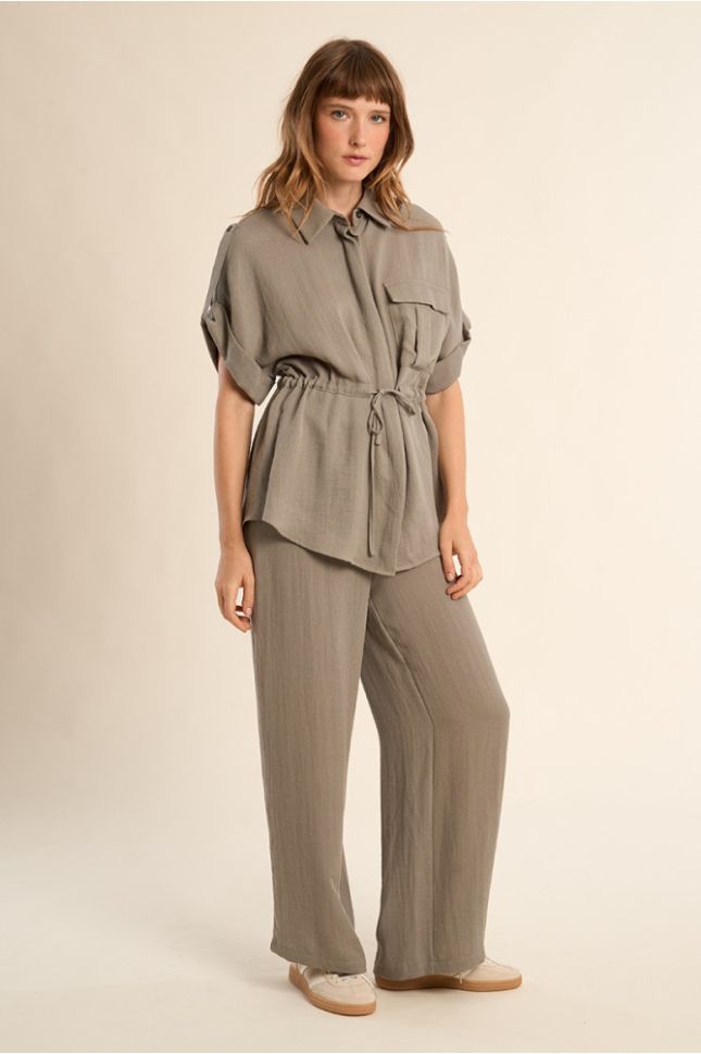 Дамски панталон цвят каки с висока талия – стилен и удобен MOLLY BRACKEN (SKU) LA1955EP