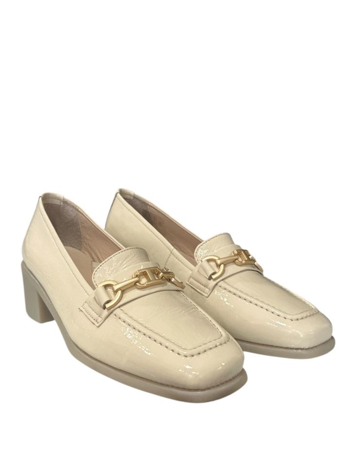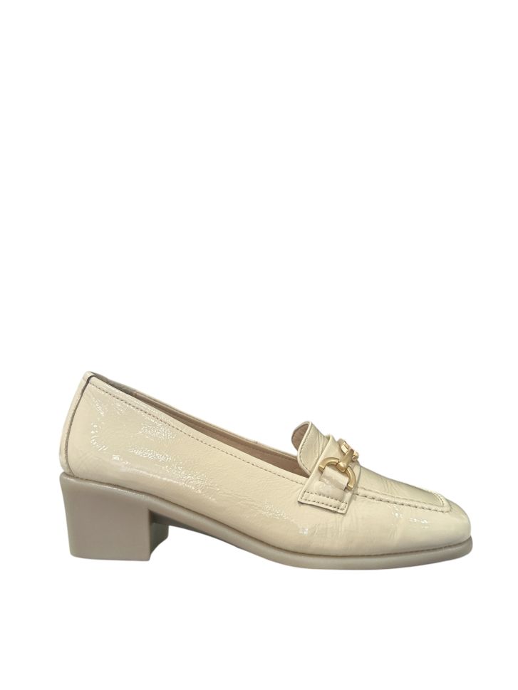 Представяме ви елегантна дамска обувка RELAX ANATOMIC в изискан кремав цвят. Изработена от естествен лак, тя придава луксозно излъчване на всяка визия. Специално проектирана за вашето удобство, обувката разполага с анатомична кожена стелка, която осигурява мекота и опора през целия ден. Анатомичното ходило с лят ток, висок 4.5 см, гарантира стабилност и елегантност. Елегантна катарама в предната част деликатно допълва изтънчения вид, правейки тези обувки перфектния акцент към вашия гардероб.